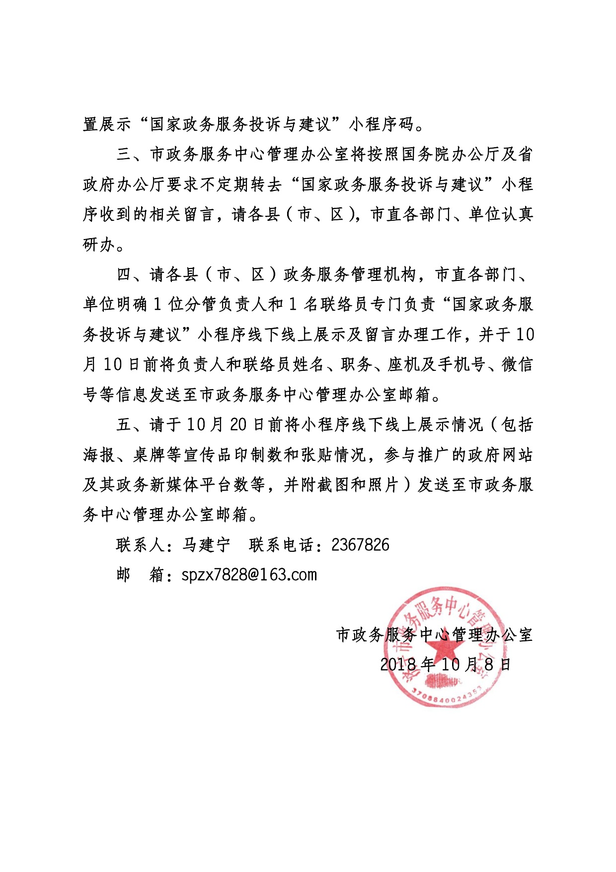 關(guān)于做好“國(guó)家政務(wù)服務(wù)投訴與建議“小程序推廣應(yīng)用工作的通知