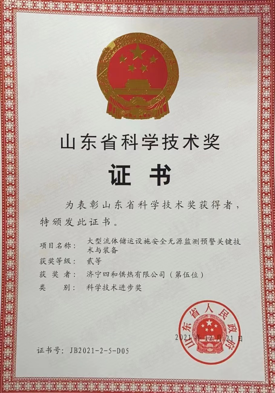 創(chuàng)新驅(qū)動發(fā)展、技術(shù)制勝未來。近日,山東省人民政府發(fā)布《關(guān)于2021年山東省科學(xué)技術(shù)獎勵的決定》,正式公布山東省科學(xué)技術(shù)獎獲獎名單,對為山東省科學(xué)技術(shù)進步、經(jīng)濟社會發(fā)展作出突出貢獻的科學(xué)技術(shù)人員和組織給予獎勵。濟寧四和供熱有限公司參與完成的“大型流體儲運設(shè)施安全無源監(jiān)測預(yù)警關(guān)鍵技術(shù)與裝備”項目名列其中,榮獲“山東省科學(xué)技術(shù)獎二等獎”。